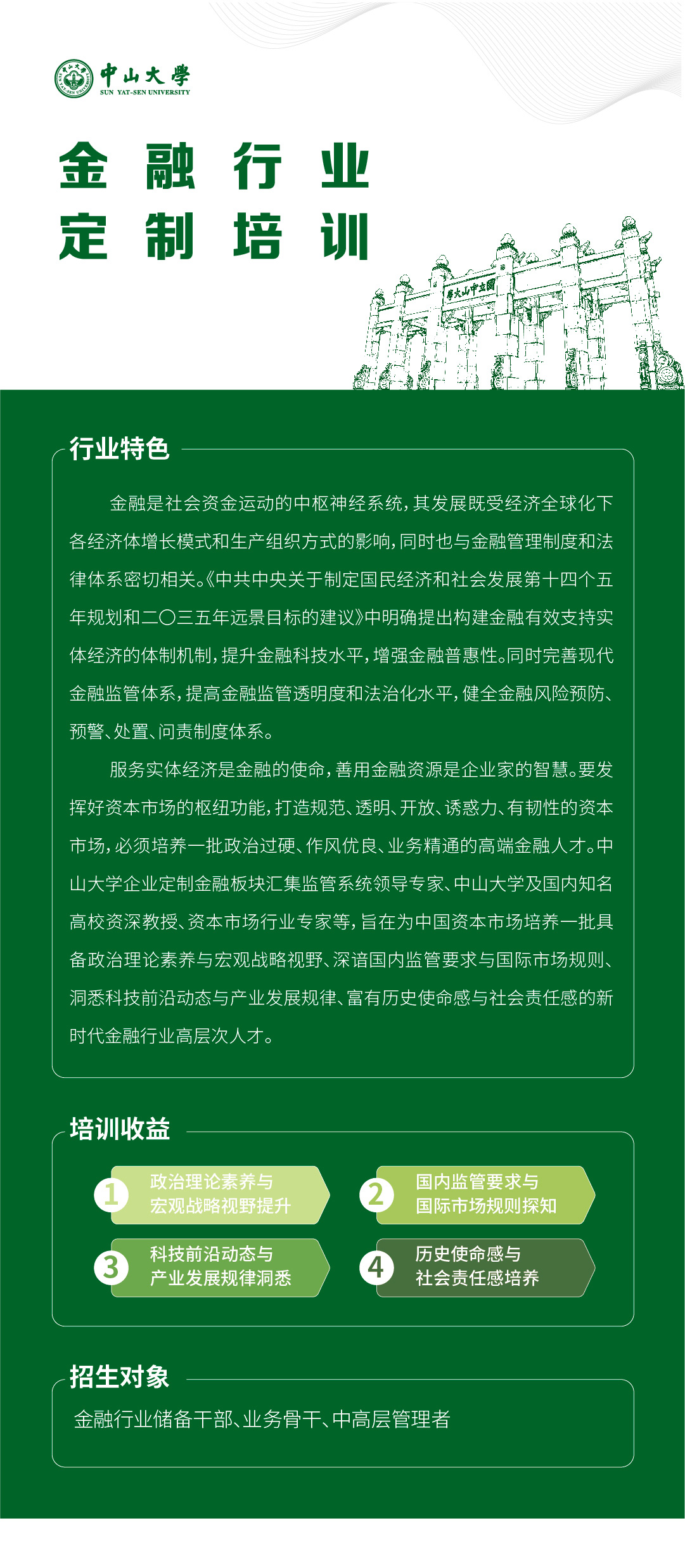 导航痕迹 首页 办学项目 企业培训 金融行业定制培训 企业培训 公开课项目 行业定制 数字化转型 国有企业定制培训 通用管理定制培训 高科技&互联网定制培训 智能制造定制培训 生物医药行业定制培训 金融行业定制培训 银行业定制培训 保险行业定制培训 能源环保行业定制培训 烟草行业定制培训 交通物流行业定制培训 房地产行业定制培训 建筑工程行业定制培训 金融定制 创业创新 学习卡 公共管理培训中心 大湾区科创中心 企业管理培训中心 医学教育培训中心 金融行业定制培训